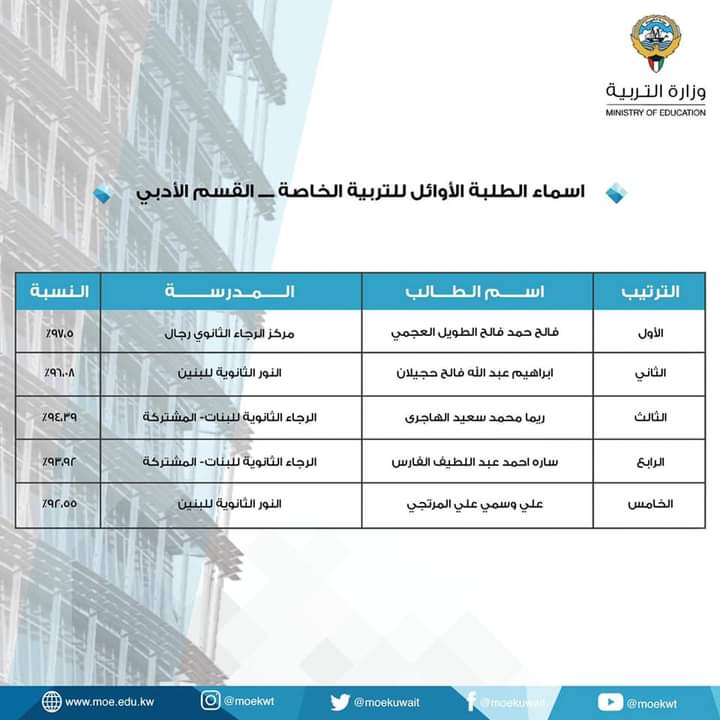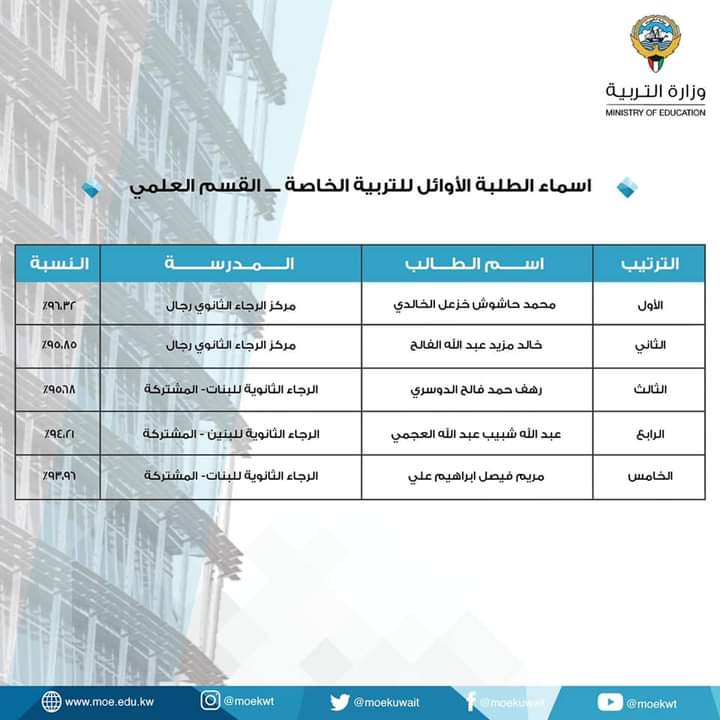 نشرت وزارة التربية أسماء الطلاب والطالبات الأوائل في المرحلة الثانوية: