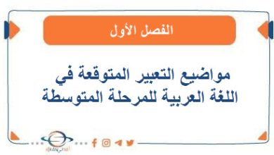 مواضيع التعبير المتوقعة في اللغة العربية للمرحلة المتوسطة الفصل الأول