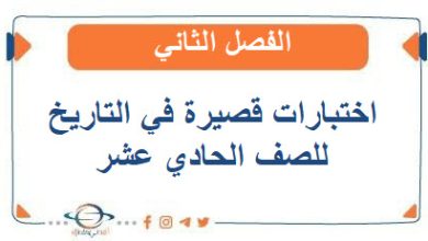 اختبارات قصيرة في التاريخ للصف الحادي عشر الفصل الثاني