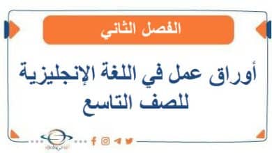 أوراق عمل في اللغة الإنجليزية للصف التاسع الفصل الثاني