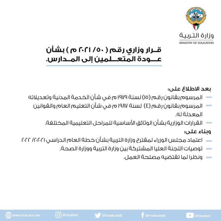 أيضاً: وظائف شاغرة جديدة لدى وزارة التربية الكويتية