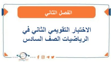 الاختبار التقويمي الثاني في الرياضيات الصف السادس الفصل الثاني
