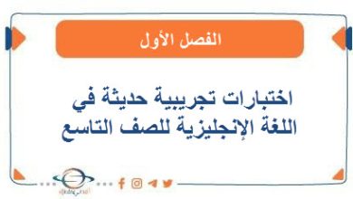 اختبارات تجريبية حديثة في اللغة الإنجليزية للصف التاسع نهاية الفصل الأول