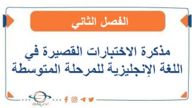 مذكرة الاختبارات القصيرة في اللغة الإنجليزية للمرحلة المتوسطة الفصل الثاني