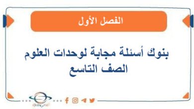 بنوك أسئلة التوجيه مجابة في وحدات العلوم للصف التاسع الفصل الأول