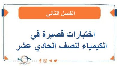 اختبارات قصيرة في الكيمياء للصف الحادي عشر الفصل الثاني