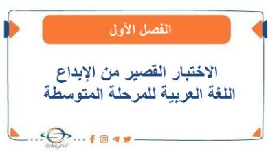 الاختبار القصير من الإبداع في اللغة العربية للمرحلة المتوسطة الفصل الأول