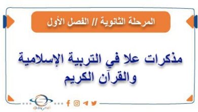 مذكرات علا في التربية الإسلامية والقرآن الكريم للمرحلة الثانوية الفصل الأول