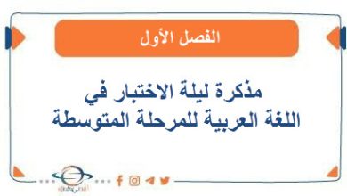 مذكرة ليلة الاختبار في اللغة العربية للمرحلة المتوسطة الفصل الأول